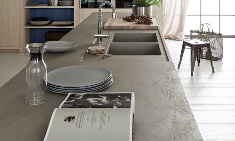 Beton ist wieder in Mode – auch in der Küche. Arbeitsplatten und ganze Küchenblöcke aus Sichtbeton geben der Küche das gewisse Etwas. Und jedes Stück aus echtem Beton ist ein Unikat! Achten Sie bei der Auswahl darauf, dass die Oberfläche poliert wurde, damit die Poren geschlossen sind. Denn Beton ist zwar kratzfest, wasserfest, hitzebeständig und pflegeleicht, durch die poröse Oberfläche aber auch anfällig für Flecken. Deshalb sollte man die Oberfläche auch regelmäßig wieder versiegeln – am besten mit Öl oder Naturwachs. Aber Tipp: Es gibt auch Fronten und Arbeitsplatten in Betonoptik. Nicht so schwer, aber ebenso gut aussehend!