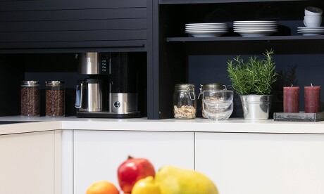 Die Alternative zur (oft elektrisch betriebenen) Klapptür ist die bewährte Jalousie: Die Lamellen solcher Rolladenschränke gibt es in vielen Farben. Aus Glas gefertigt sind sie auch semitransparent zu haben und können in Ihrer Wunschfarbe hinterlackiert und somit perfekt an Ihre Küche angepasst werden.