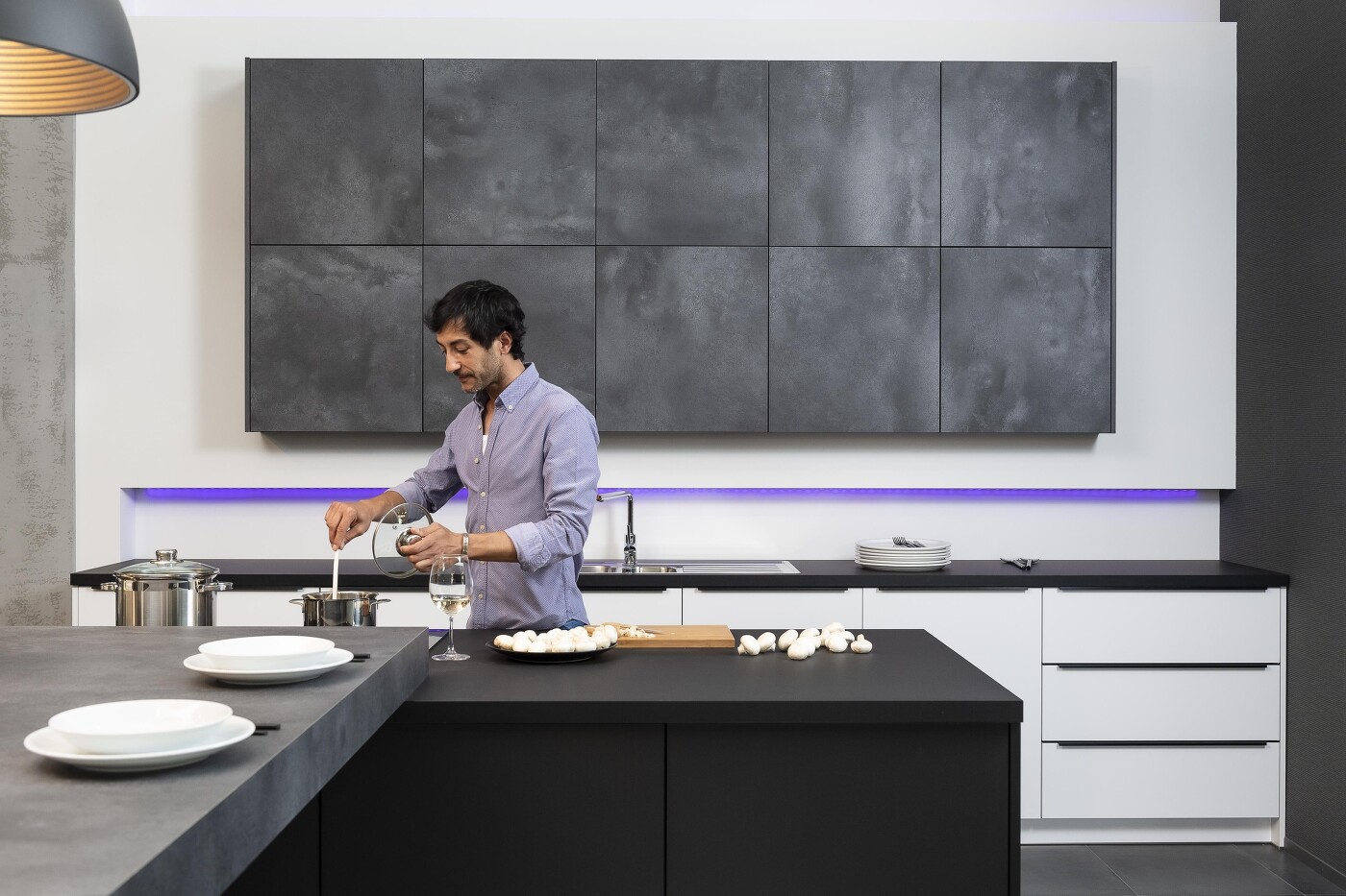 264 Meter Laufstrecke kommen pro Person täglich in einer typischen L-Küche zusammen! Der Beschlägehersteller blum hat das einmal in einer Studie ermittelt. Umso wichtiger ist es, das Arbeitsdreieck gut zu gestalten, Werkzeug ergonomisch zu lagern und individuelle Kochgewohnheiten und Lebensstile mit einzuplanen. Andernfalls kann Küchenarbeit ganz schön in die Beine gehen. Also z.B. möglichst viel Geschirr in Schränken neben dem Geschirrspüler verstauen, Tassen nahe der Kaffeemaschine, Tee in der Nähe des Wasserkochers, Messer gleich beim Schneidebrett, Küchenhandtücher bei der Spüle usw. Nutzen Sie unsere Erfahrung, um Ihre neue Küche perfekt auf Sie zuzuschneiden! Willkommen in unserem Küchenstudio!