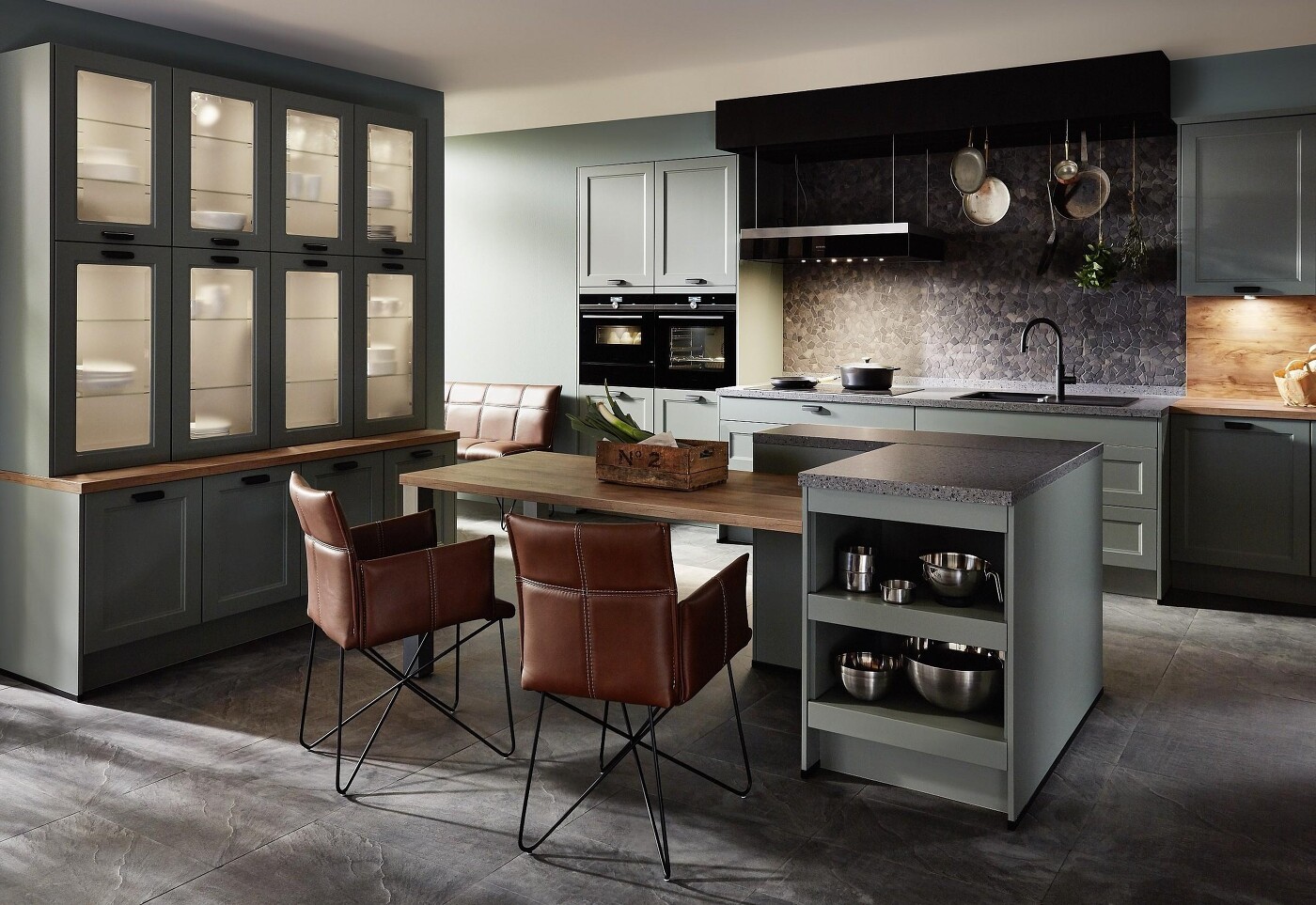 Statt dafür Trockenbauwände zu ziehen, können solche Aufteilungen auch per Küchenzeile geschaffen werden. Beim hier gezeigten Beispiel wird ein deckenhohes modernes Küchenbuffet als Raumteiler genutzt. Es entsteht eine von der Küche abgegrenzte Wohnzone mit praktischem Durchgang von der Küchenzeile aus.