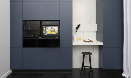 Ausreichend Stauraum geschaffen und Lust auf eine ungewöhnliche Hochschrankgestaltung? – Wieso nicht bei einer breiten Hochschrankwand einen Schrank auslassen und in diese Lücke eine kleine Sitzgelegenheit mit Wandtisch einbauen? – So ein Arbeitsplatz ist für alles Mögliche nutzbar und lockert die Küchengestaltung auf, gerade wenn er farblich kontrastiert, sich dafür aber von der Anordnung her gut ins Gesamtbild einfügt. Unser Beispiel zeigt, dass sich so etwas sehr gelungen inmitten griffloser Küchenfronten umsetzen lässt. Mehr Ideen gefällig? – Kontaktieren Sie uns doch einfach!