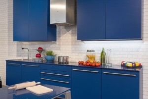 Der Samtmatteffekt bei Küchenmöbelfronten wird durch ein besonderes Silikatmineral im Lack erreicht, das durch seine Porosität das einfallende Licht „schluckt“ und deshalb matt und samtig wirkt. Manchmal werden diese Oberflächen auch „pelle di pesca“ (= Pfirsichhaut) genannt. Die Porosität macht diese Oberfläche empfindlich gegen stark gefärbte Flüssigkeiten wie z.B. Johannisbeersaft, Tomatenketchup oder Rotwein, aber auch gegen Fettspritzer. Hier gilt ganz besonders, dass umgehend gereinigt werden muss. Ist der Fleck erst einmal eingetrocknet, kann er meist nicht mehr vollständig entfernt werden. Man kann zwar versuchen, Flecken mit einer weichen Bürste und einem milden Haushaltsreiniger zu behandeln, aber meist ohne großen Erfolg. Mit aggressiveren Mitteln oder Scheuermittel wird die Oberfläche aufpoliert und es entsteht ein hässlicher Glanzfleck.